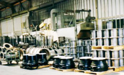 当社は、ダクタイル鋳鉄製のガス用異形管、上下水道用異形管及び各種産業用ロボットの部品素材を鋳造〜機械加工〜塗装まで一貫して行っております。